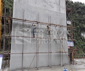澧水南源大橋位于桑植縣上洞街鄉(xiāng)澧水南源峽谷區(qū),上跨澧水南源河。溝谷陡峭,地勢(shì)險(xiǎn)峻,相對(duì)高差50~100米,集水深、水流急、斜巖、覆蓋層淺、護(hù)筒穩(wěn)固性差易造成漏漿、成樁難,環(huán)保要求高等特點(diǎn)。全橋長(zhǎng)237.7m,橋跨布置為2*112m預(yù)應(yīng)力混凝土T構(gòu)連續(xù)梁,T構(gòu)最大節(jié)長(zhǎng)4.5米,高13.5米,重350噸,采用懸臂掛籃施工;1#主墩位于溝谷底邊,為薄壁空心墩,墩高49米,施工高度達(dá)60米。為全線重難點(diǎn)控制性工程?;炷翝仓缶植课恢蒙钶^大,不符合混凝土工程外觀要求。采用筑致杰清水混凝土修補(bǔ)體系對(duì)外觀局部色差進(jìn)行修復(fù)。修復(fù)后的混凝土墻面顏色和周圍基本統(tǒng)一,同時(shí)保留原有混凝土的紋理和質(zhì)感。