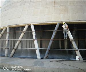 碳化主要是煙囪排放的氣體使周圍空氣中的CO2濃度增加,長期處在高濃度的CO2侵蝕,導(dǎo)致塔身、人字柱的混凝土產(chǎn)生碳化,在有濕氣存在的條件下,碳化的混凝土因收縮而導(dǎo)致開裂。